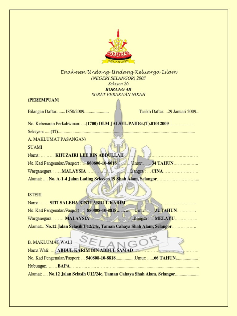 Surat Perakuan Nikah Perempuan Pdf